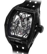 Zaman Alandi’s Elysium Collection celebrates the art of watchmaking with a bold skeleton dial that showcases its in-house automatic movement. Sapphire glass ensures that the intricate details of this automotive-inspired design are fully appreciated.