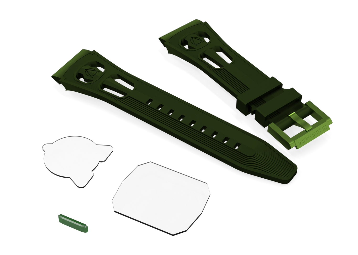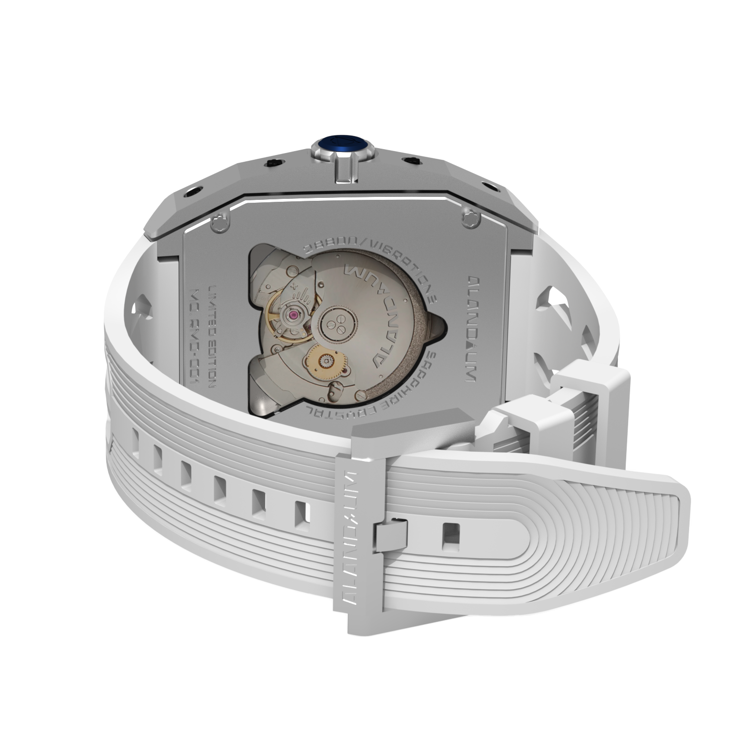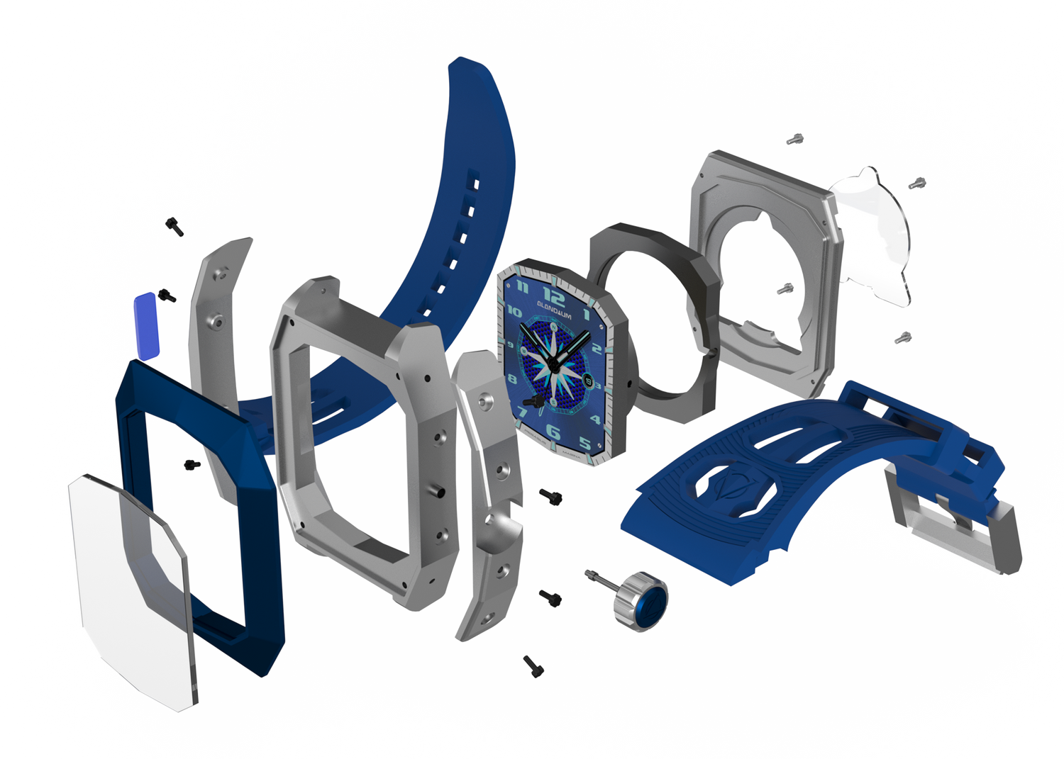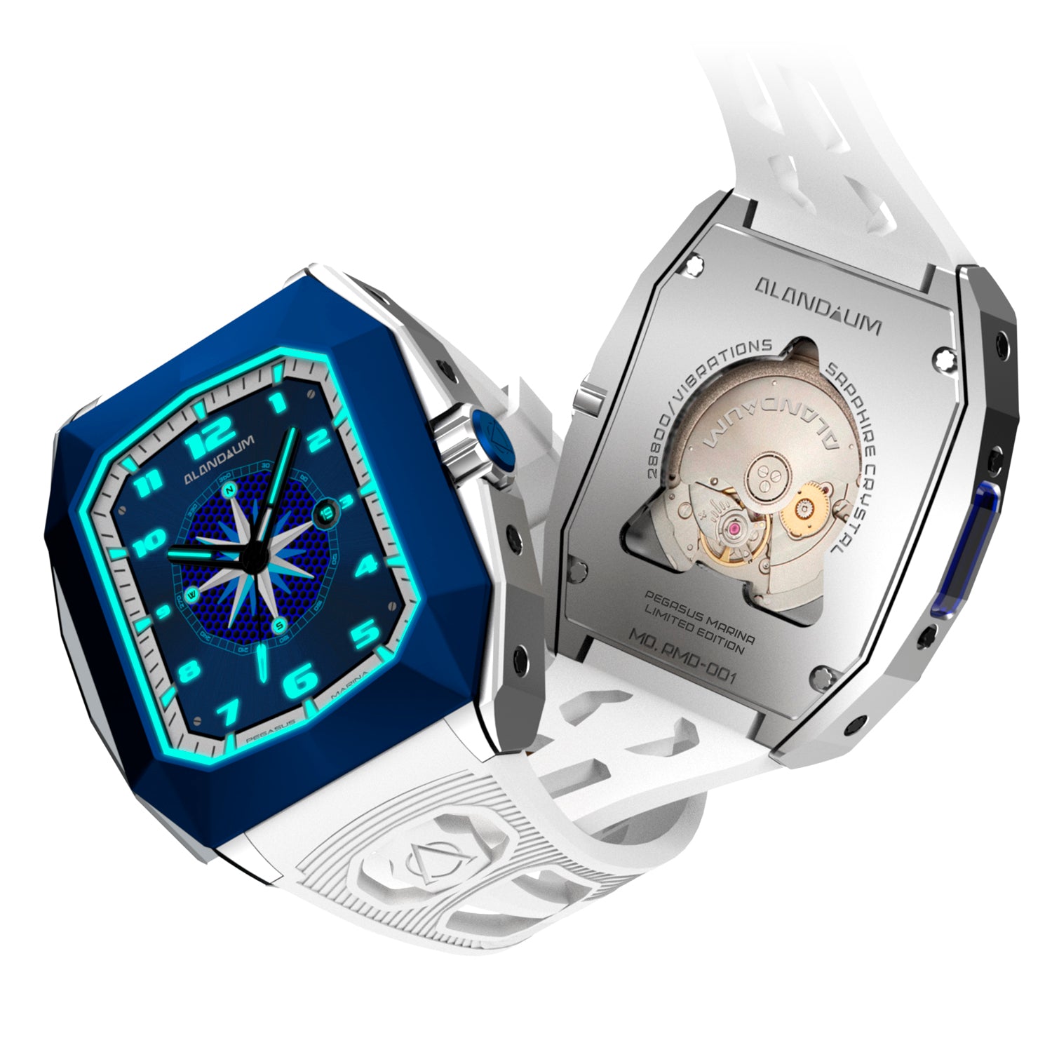 We incorporated a custom-made high-quality rubber strap. The front and back glasses are crafted from pure crystal, enhanced with an anti-reflective (AR) coating. Designed to seamlessly integrate with the watch, ensuring the Pegasus Marina Watch meets the highest standards of durability and performance.