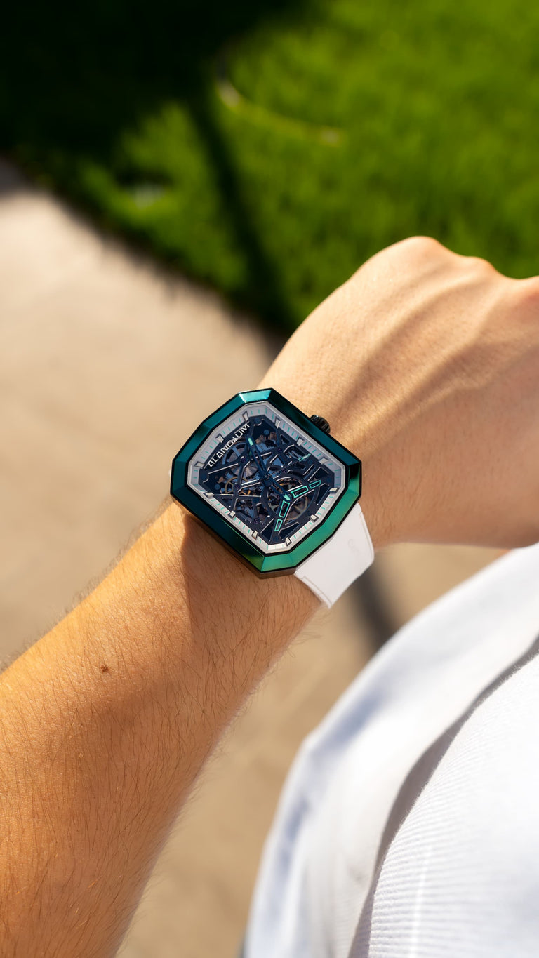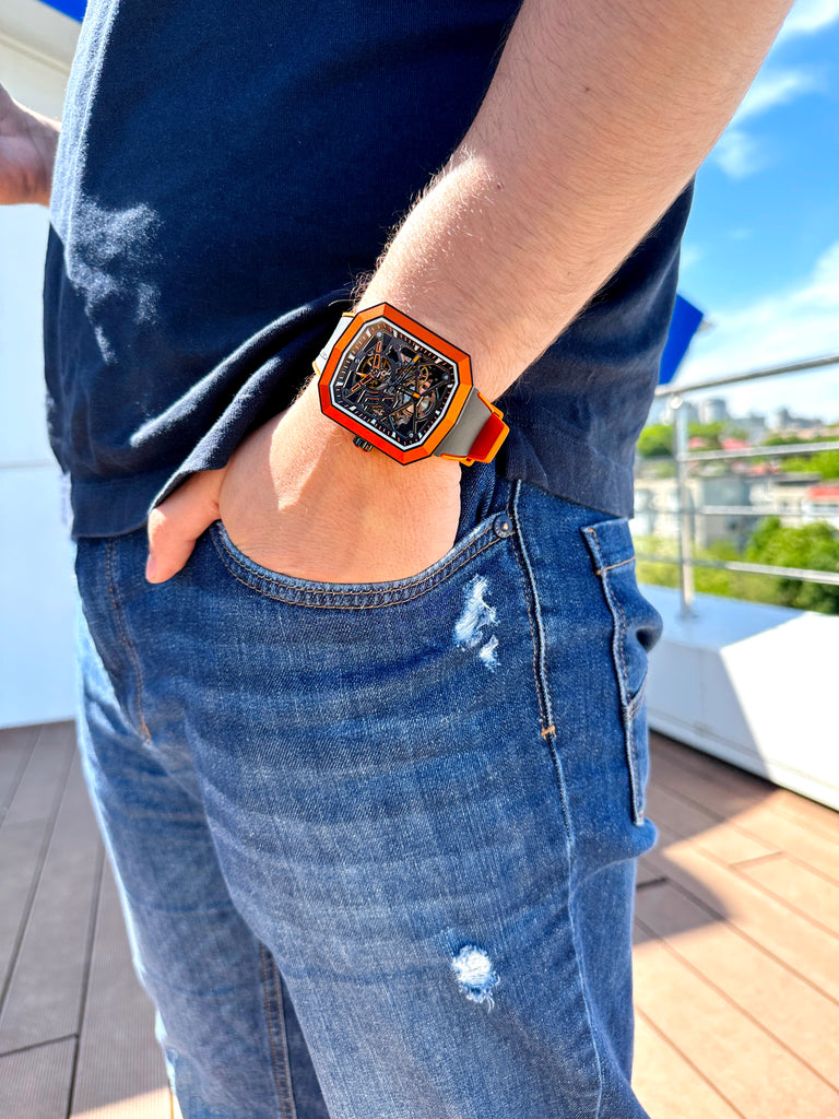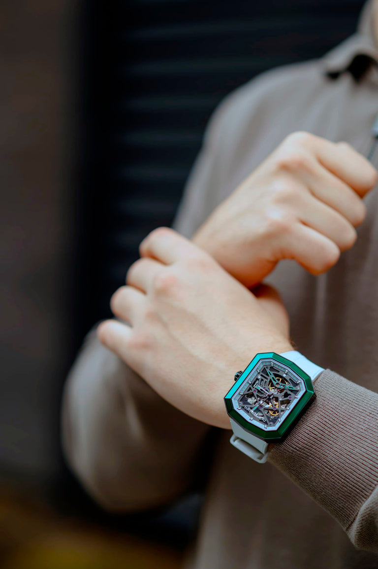This unique timepiece is a testament to our automotive roots, blending the high horsepower of car tuning with the sleekness of race-inspired design.