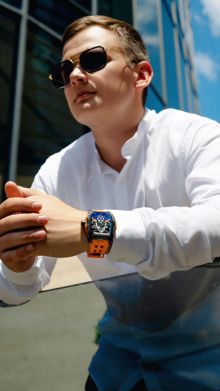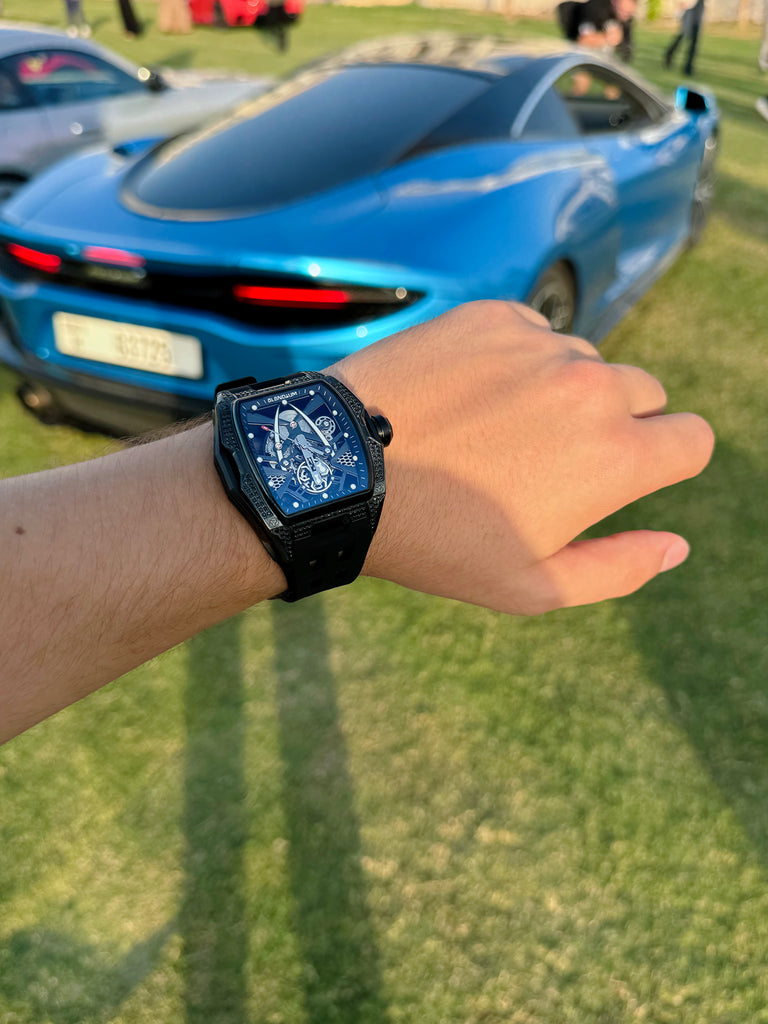 The Hyperion Watch is a statement of power and elegance, defined by its striking tonneau-shaped case. Crafted from 316L stainless steel, it offers exceptional durability while maintaining a sleek finish that enhances its distinctive silhouette. Every curve and contour is designed to catch the light, making the Hyperion not just a timepiece, but a work of art that demands attention.