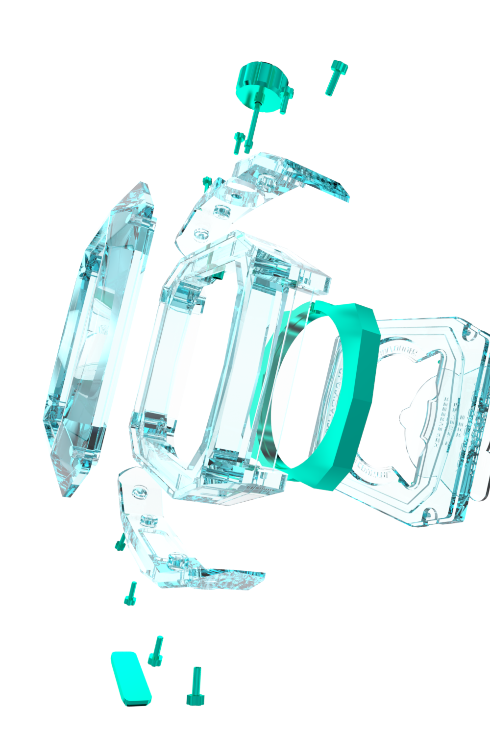 Plato wrote that these geometric shapes—the cube, tetrahedron, octahedron, dodecahedron, and icosahedron—are the foundation of all existence, from celestial bodies to material objects. We have translated these forms into our designs, creating cases that not only adhere to the laws of physics but also embody the idea of perfection and harmony inherent in these geometries. Every edge, every line in our watches is meticulously crafted to represent the perfect balance that Plato believed to be the key principle of the universe.