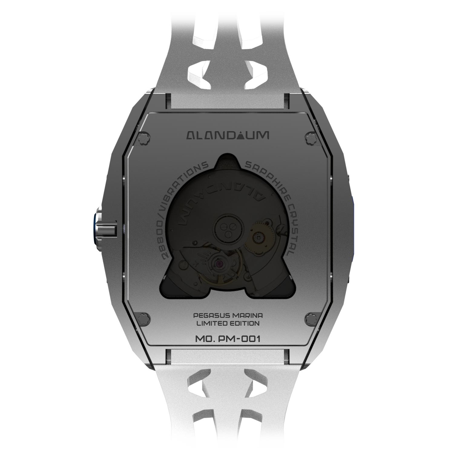 The case back has a unique designed sapphire crystal, that reveals the custom rotor, a true testament to fine watchmaking. Installed with hexagonal titanium screws, every element is meticulously designed to harmonize with your wrist. The engraved "Limited Edition" and the watch’s unique number, highlight its rarity and exclusivity. This special design invites you to admire the heart of the watch.