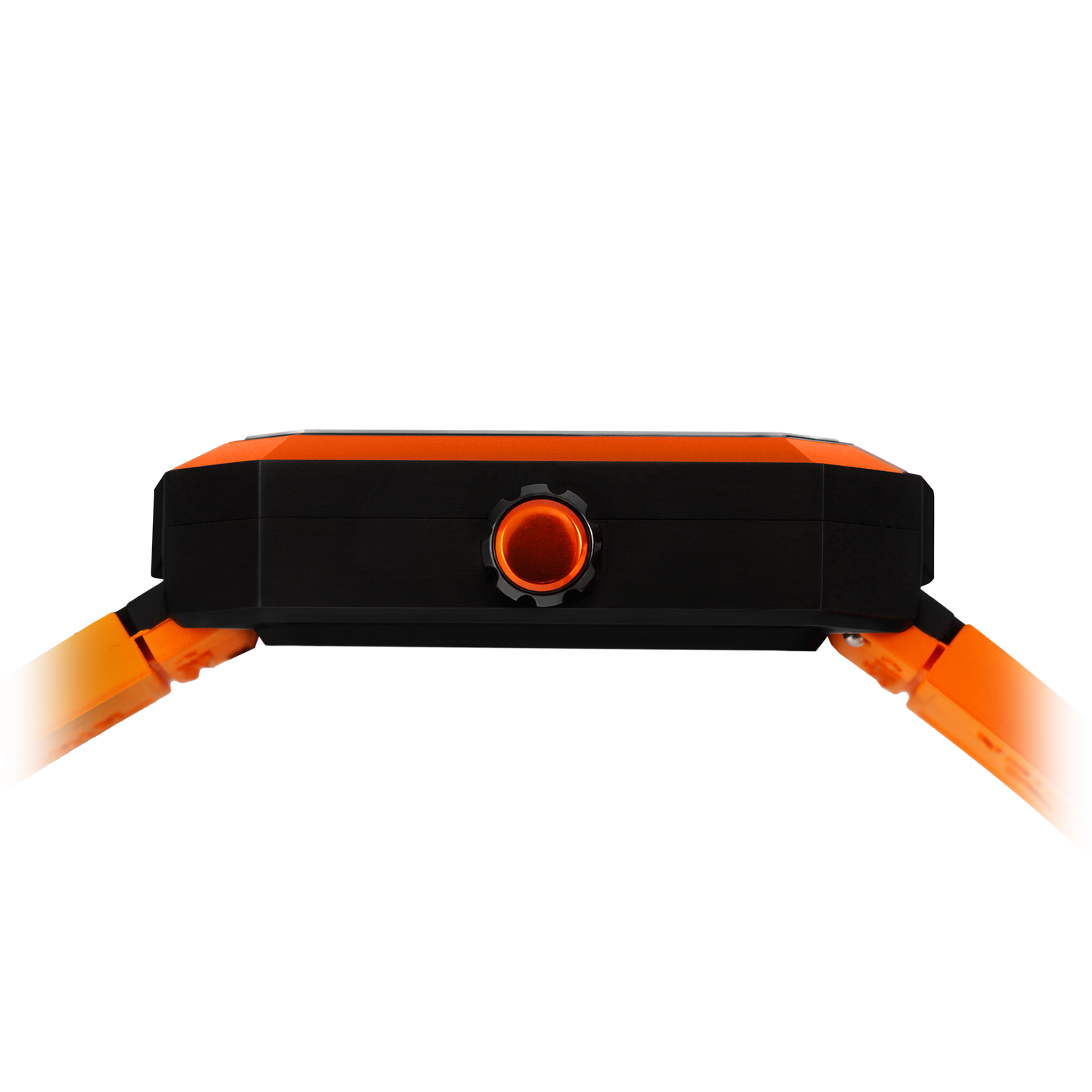 Imagine the sleek, dark asphalt of a racetrack at night, with fiery orange lines evoking the blazing lights of a car speeding through the darkness. This is the essence captured by the road-inspired rubber strap of Elysium.