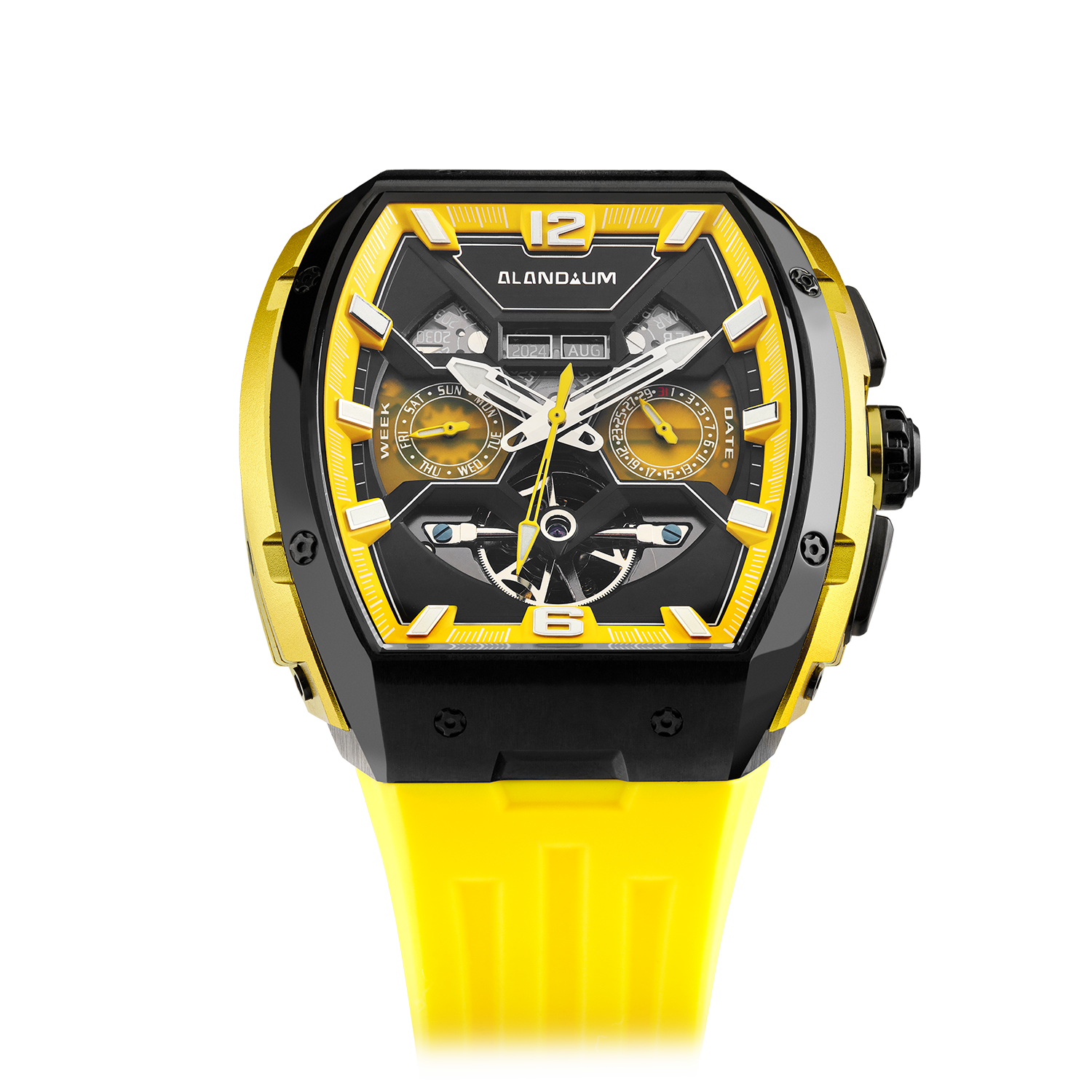 Beneath the captivating surface lies a multilayered dial. Imagine the convenience of having the year, month, date, and day displayed in a clear and intuitive layout, all seamlessly integrated into the watch's energetic design.