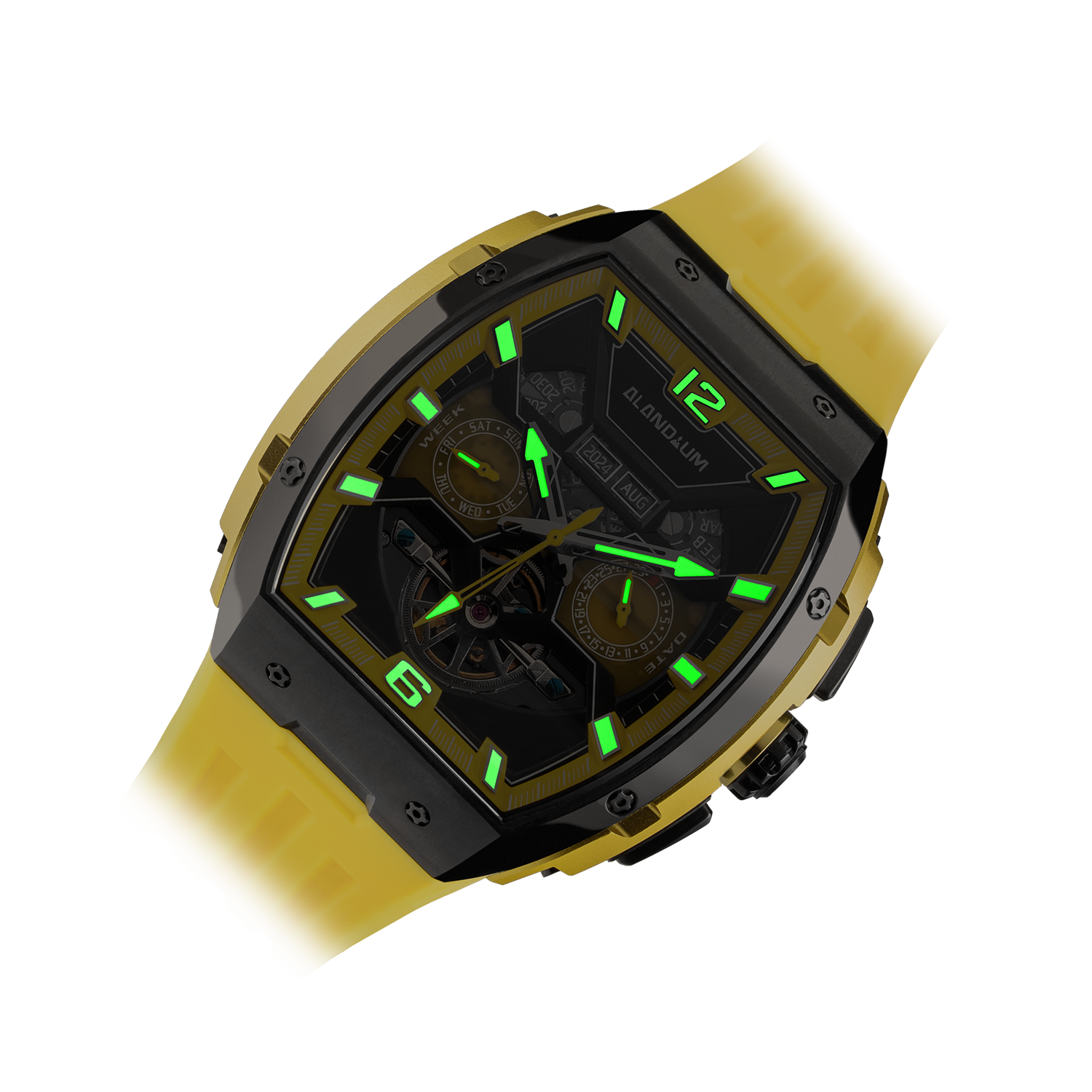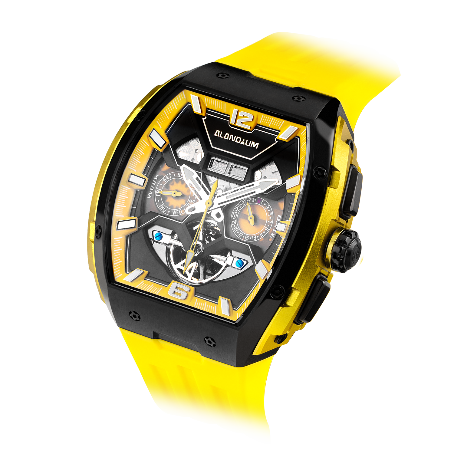 But the Mercurius Acid Yellow isn't just about bold aesthetics; it's a testament to functionality disguised as a vibrant statement piece, due to the in house developed mechanism.