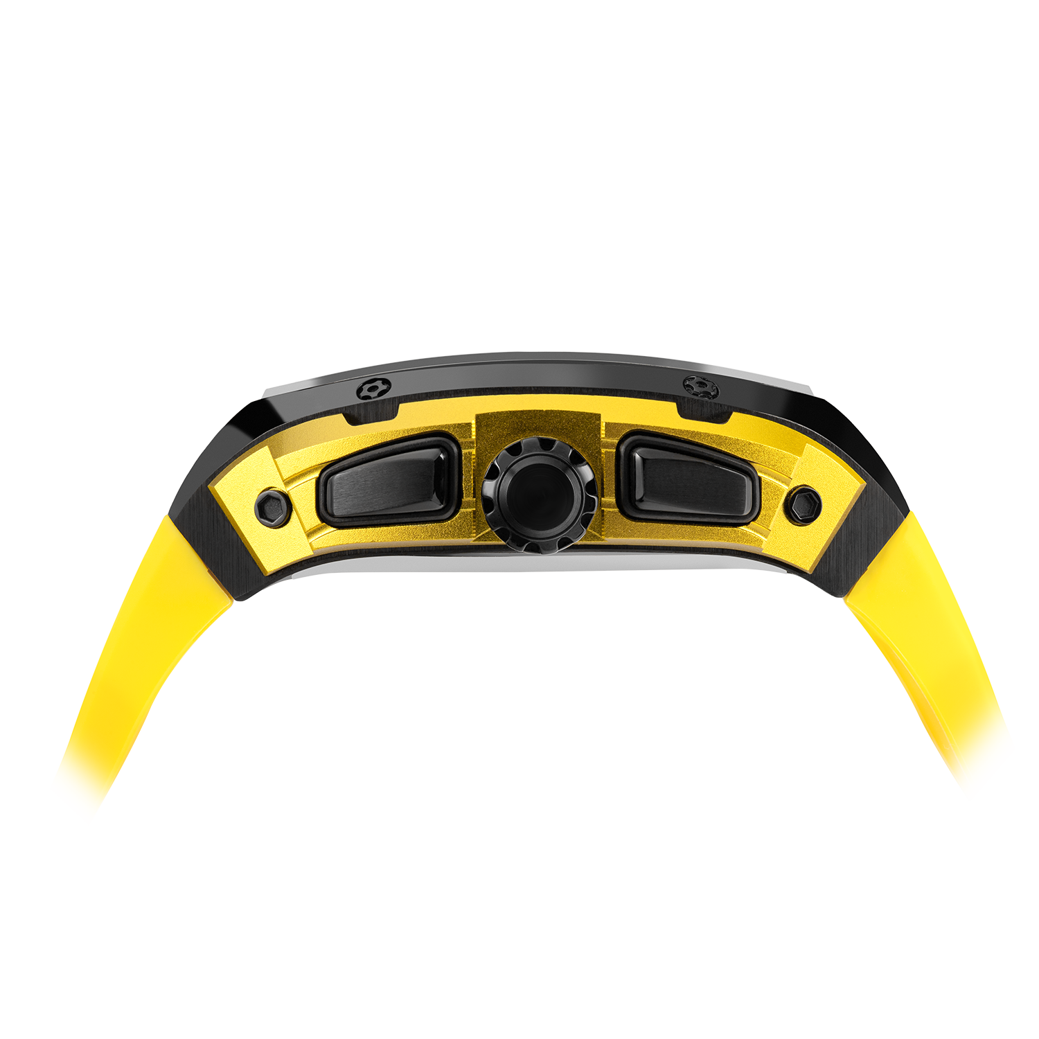 Unleash your electric spirit with the Mercurius Acid Yellow. A vibrant yellow rubber strap sets the tone for a watch that pulsates with audacious energy.
