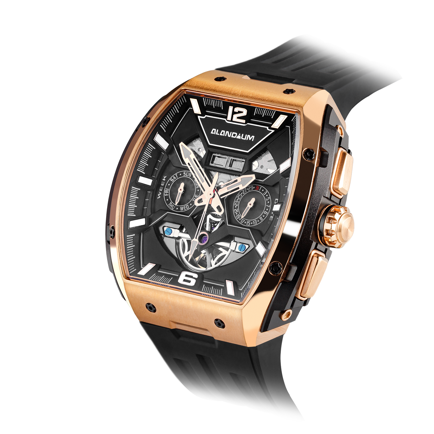 Slip into effortless sophistication with the Mercurius Rose Gold. A multilayered dark dial, the perfect canvas for both sharp focus and quiet contemplation, within a luxurious rose gold case.