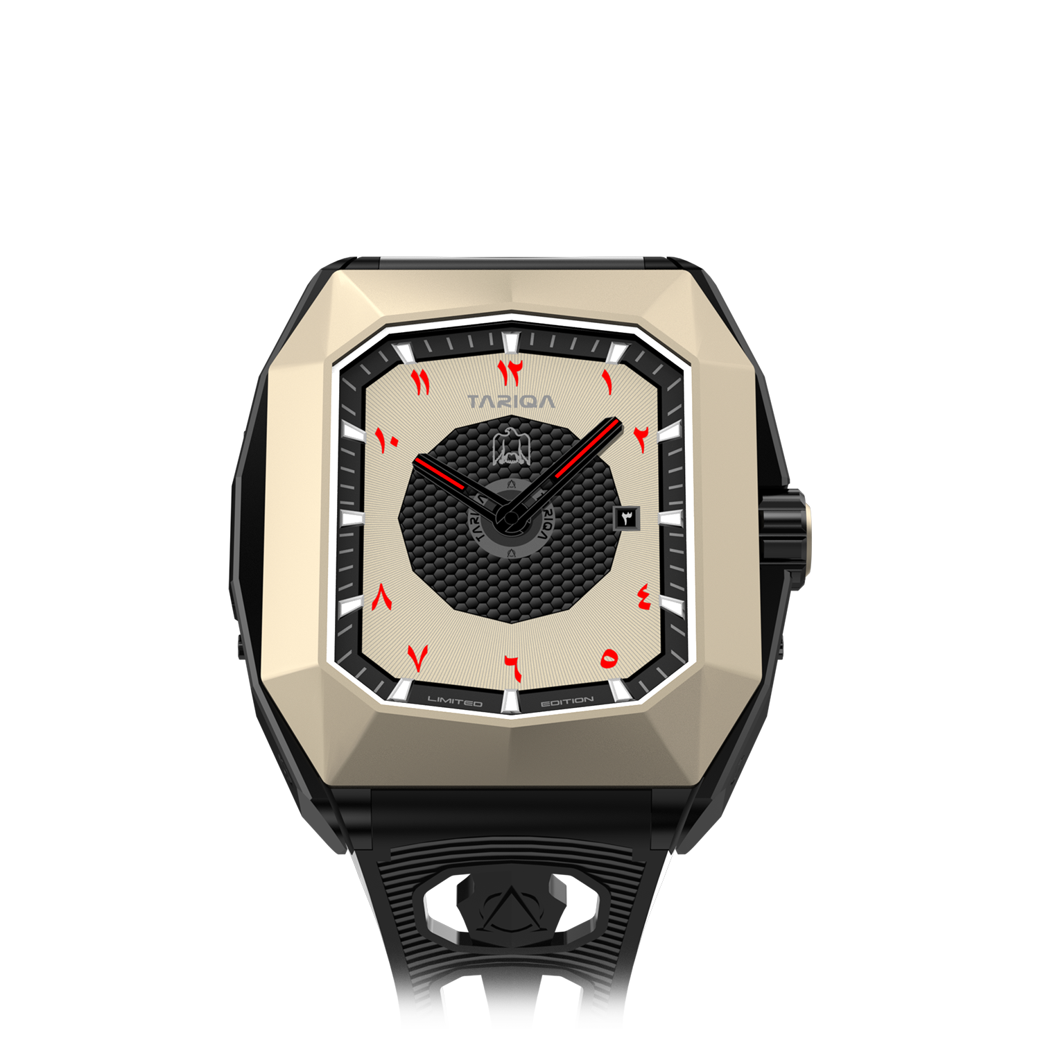 The Arabic dial celebrates Emirati identity, with numerals and a date function in Arabic script, alongside an engraved falcon at its center. The falcon symbolizes freedom, strength, and tradition, creating a timeless connection to UAE heritage. Together, these elements make the watch a tribute to the nation’s enduring spirit and cultural pride.