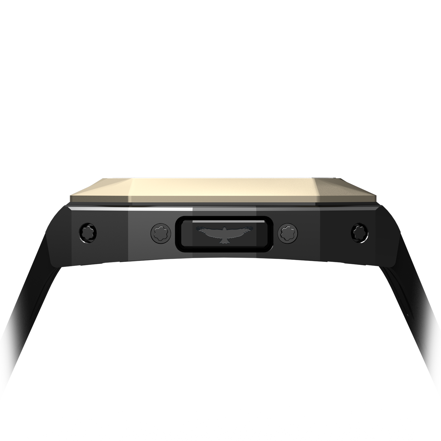 The left side of the watch features a crystal insert at its center, showcasing a flying falcon - an iconic symbol of UAE culture, representing freedom, strength, and precision. The falcon is meticously engraved into the crystal. This elegant detail adds a touch of heritage and artistry, making the watch a true tribute to Emirati identity.