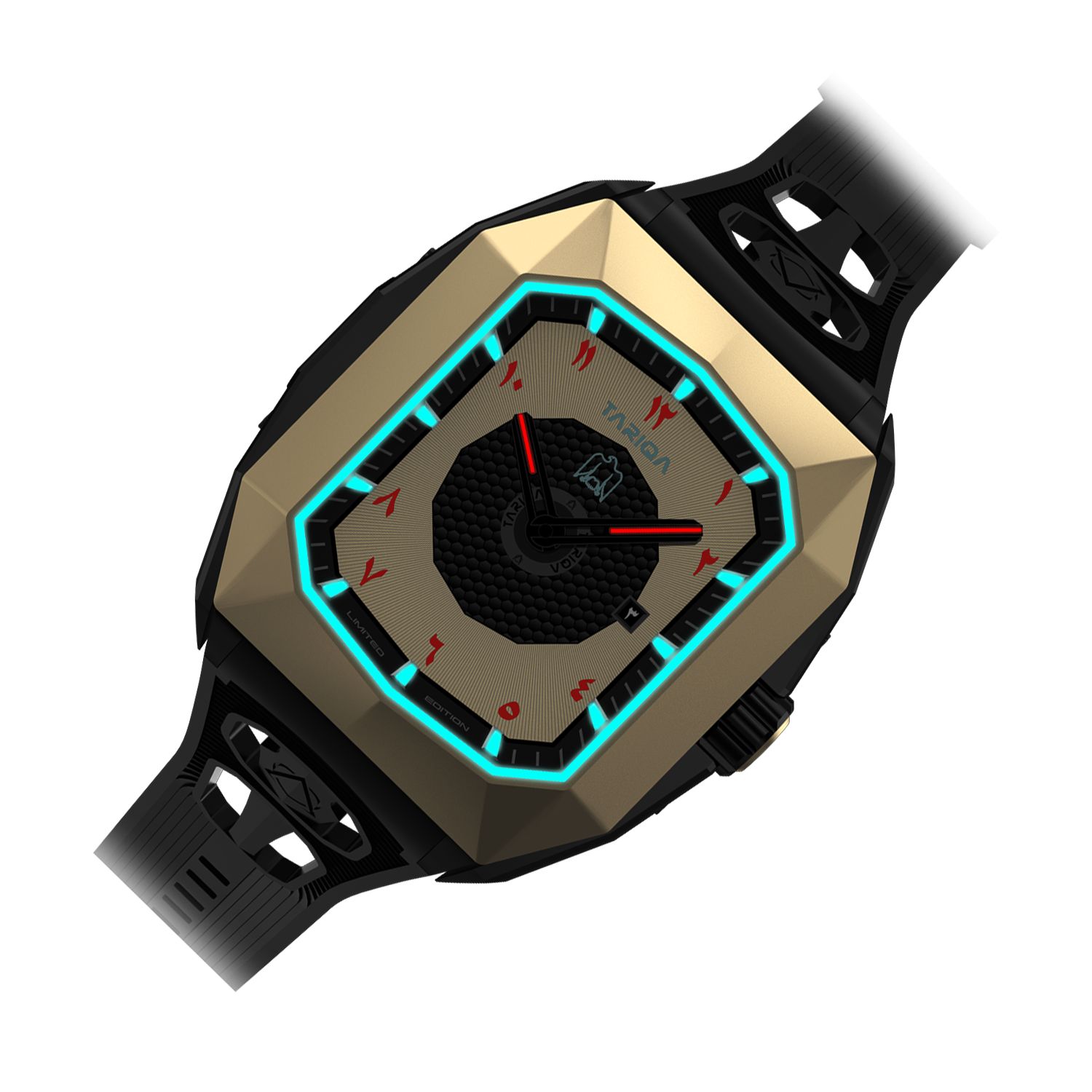 The case features a one-of-a-kind geometry, unlike any other watch in the world, making it truly unique in design and structure.