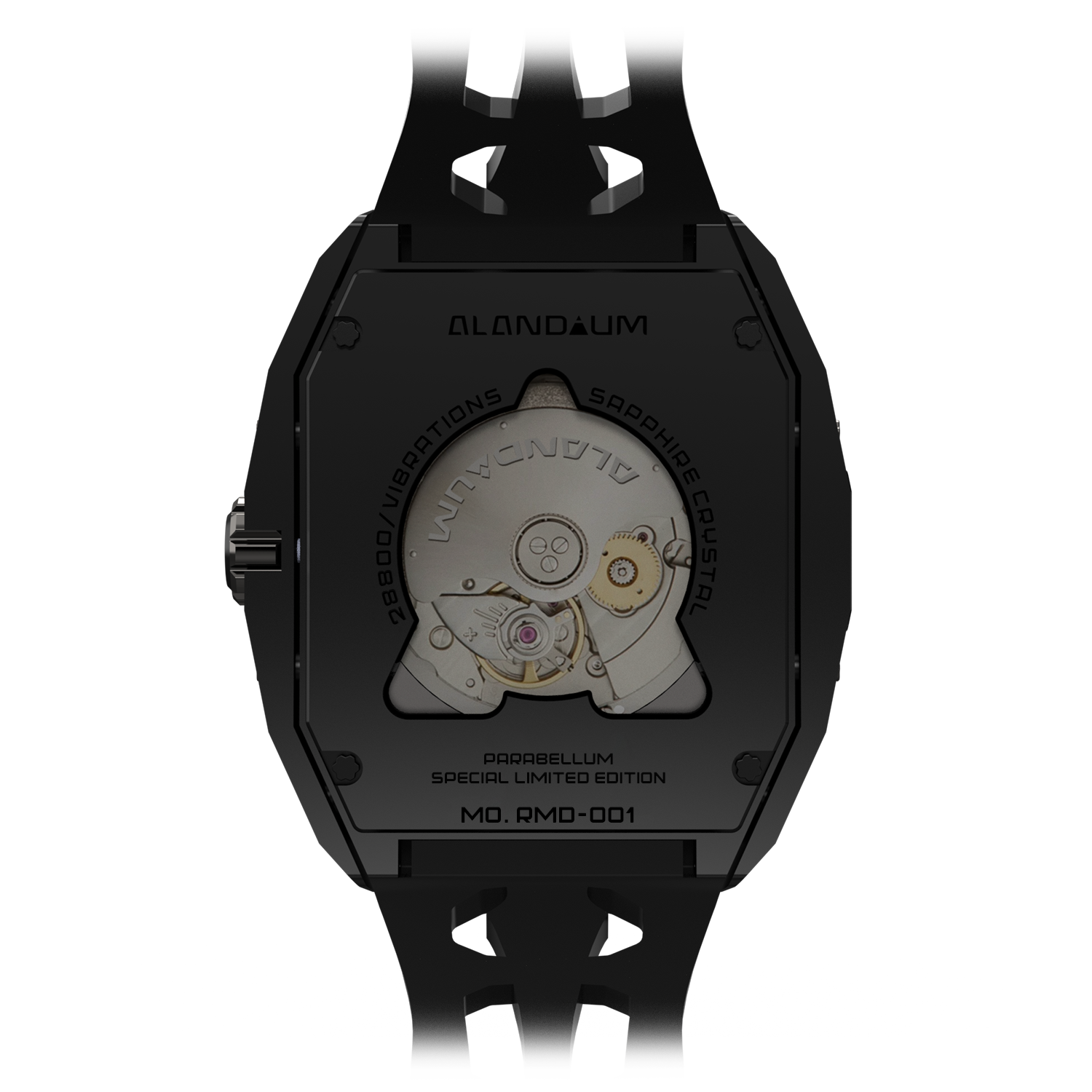 The case back has a unique designed sapphire crystal, that reveals the custom rotor, a true testament to fine watchmaking. Installed with hexagonal titanium screws, every element is meticulously designed to harmonize with your wrist. The engraved "Limited Edition" and the watch’s unique number, highlight its rarity and exclusivity. This special design invites you to admire the heart of the watch.