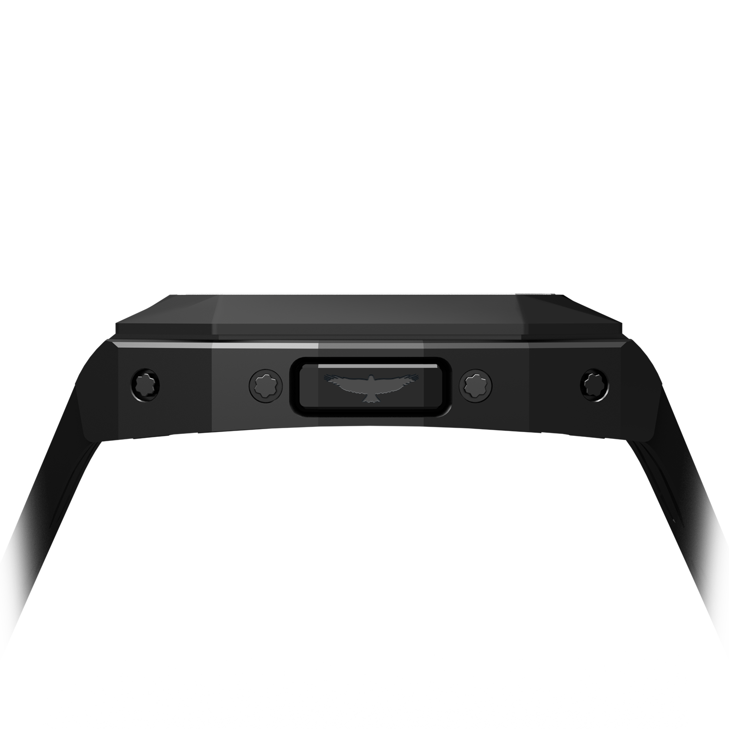 The left side of the watch features a crystal insert in the center, showcasing a flying falcon—a powerful emblem in the military world, symbolizing strategy, dominance, and sharp vision. Meticulously engraved into the crystal, the falcon represents the precision and tactical mastery essential to those who lead with focus and strength.